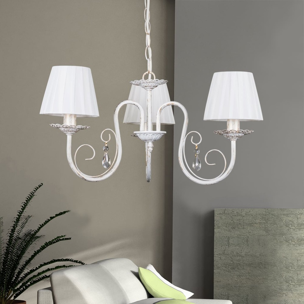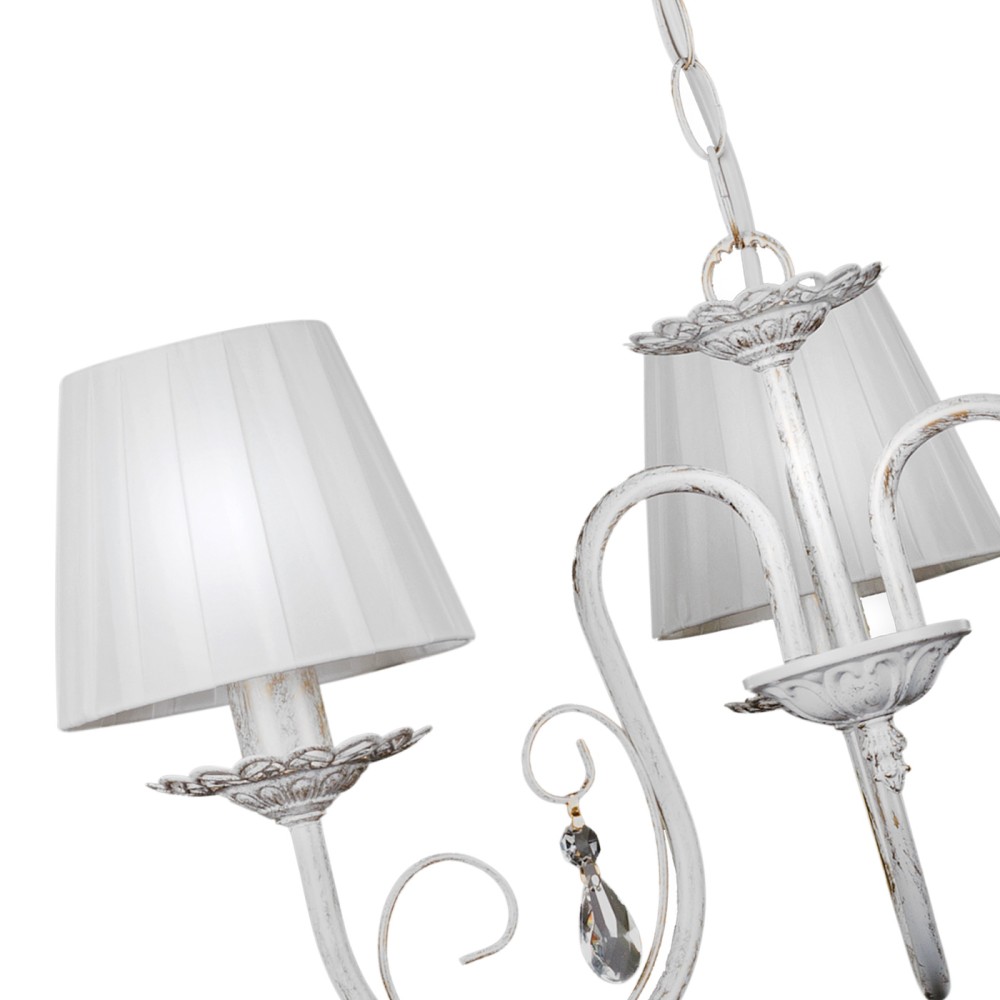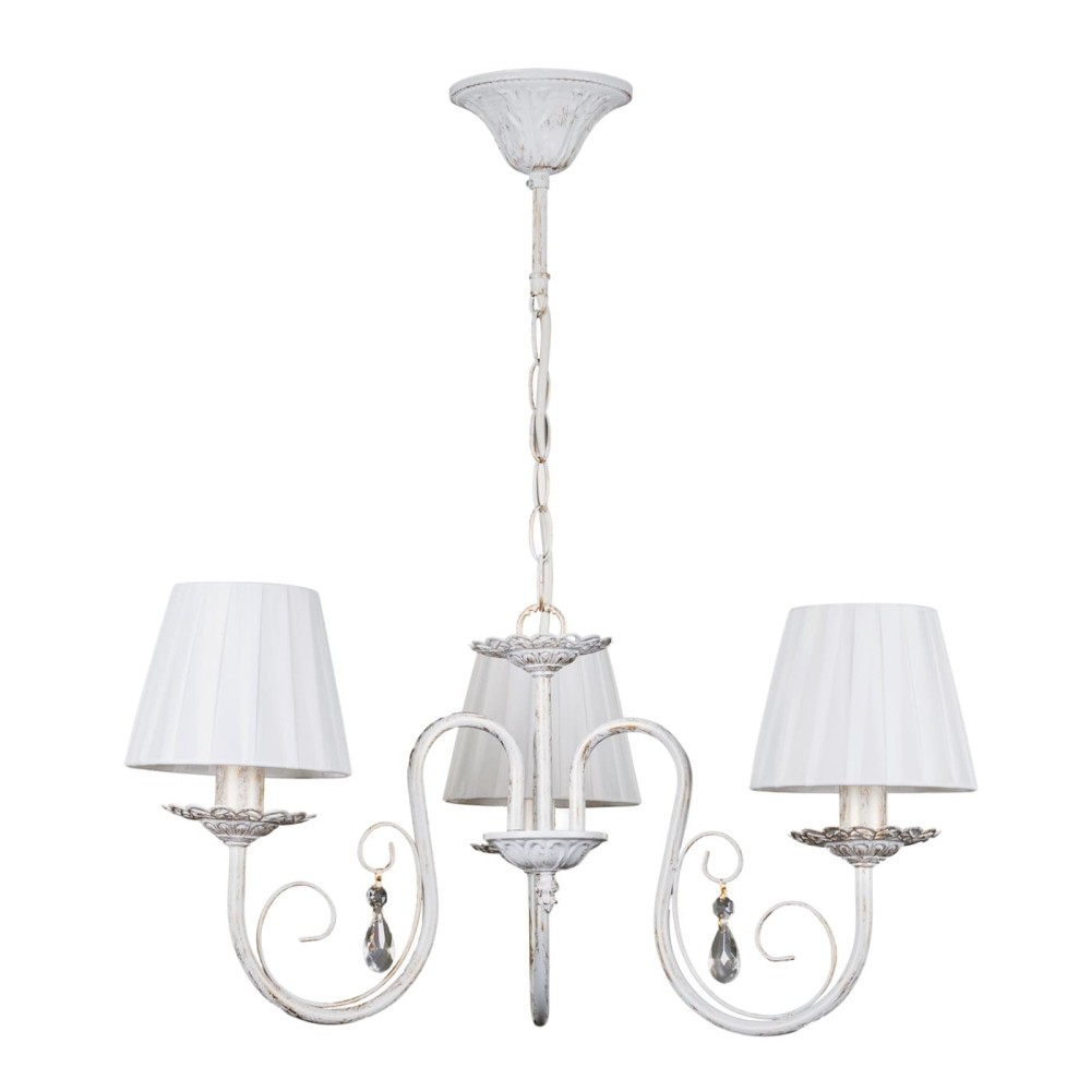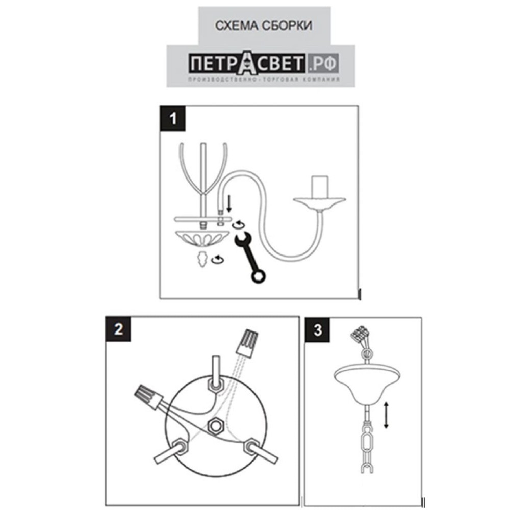 Люстра подвесная 3 лампы с абажурами российского производства ПЕТРАСВЕТ S1002-3, 3хЕ14 макс, 60Вт с абажурами, цепь можно укоротить до 1 звена на 17 см, стиль - классика свечи, арматура - металл, цвет светильника- белый с патиной золота, размеры светильника (LxWxH) - 58x58x62, вес - 1,4 кг, Люстра подвесная для натяжных потолков и освещение 9-12 м2 помещения в зависимости от мощности лампочек Е14, Люстра подвесная цепная трех рожковая свечи подходит для освещения комнат, кабинета, гостиной, спальни, столовой, детской, кухни, Заводская гарантия 7 лет, Люстра просто собирается, Люстра 3 рожковая собрана и проверена на производстве, плотно упакован в коробке из тройного гофра картона, Лампочки светодиодные LED подбираются по следующим параметрам: для яркого освещения - 3 Вт на 1 м2 комнаты, для среднего - 2 Вт на 1 м2,