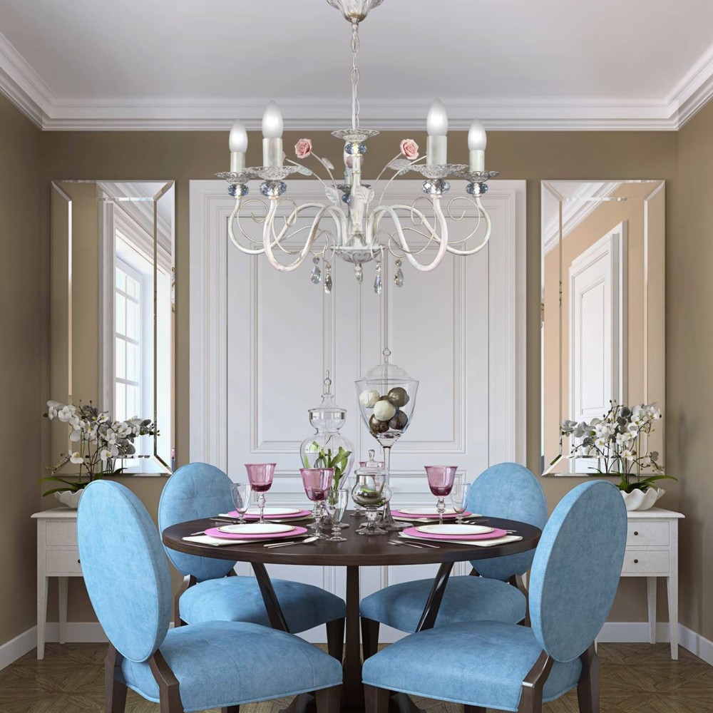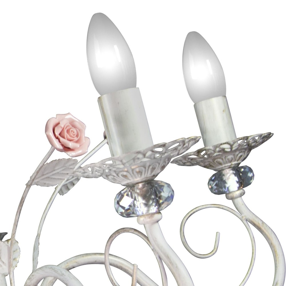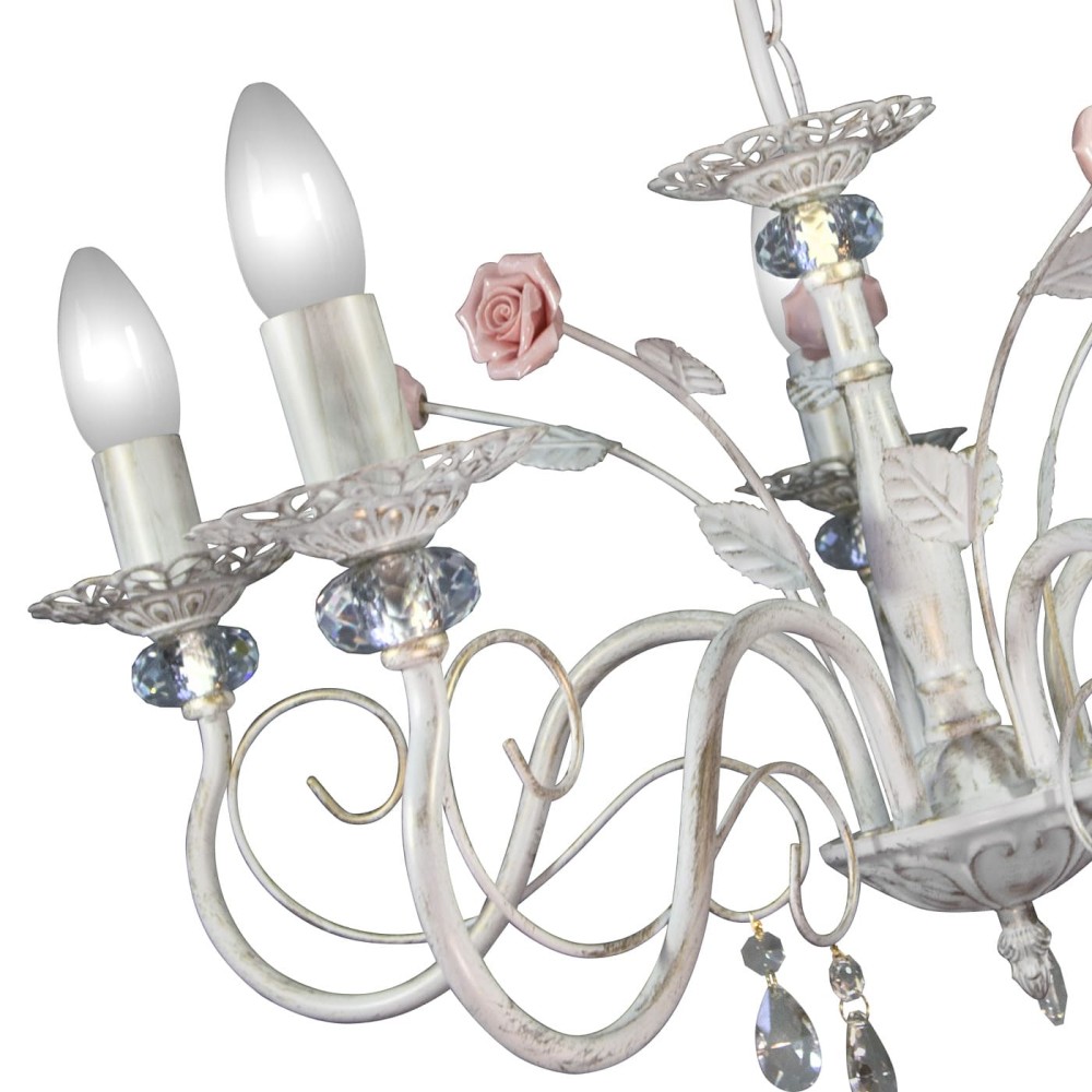 Изысканные розовые розы, выполненные из хрусталя, являются главным украшением люстры. Они добавляют ей романтичности и женственности.