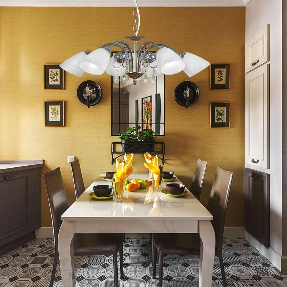 Люстра подвесная 6 плафонов S2004-6 – элегантное освещение для вашего дома Эта роскошная люстра S2004-6 от бренда Петрасвет – идеальное решение для создания атмосферы уюта и великолепия в вашем интерьере. Она сочетает в себе классическую элегантность, современные технологии и внимание к деталям, предлагая вам не только функциональное, но и эстетически привлекательное освещение. Произведенная в России, люстра отличается высоким качеством исполнения и надежностью. Основные характеристики и преимущества: Дизайн и Стиль: Люстра S2004-6 воплощает в себе идеальное сочетание стилей: классики, неоклассики и прованса. Изящный хром, сочетающийся с элегантными хрустальными подвесками, создает неповторимый образ, который подчеркнет статус вашего дома. Ее форма и детали выполнены с учетом принципов классического дизайна, придавая ей благородный и изысканный вид. Она станет прекрасным дополнением к ванной комнате, гостиной, столовой или спальне. Материалы и Качество: Люстра изготовлена из высококачественных материалов: прочного и долговечного металла, прочного стекла и хрусталя. Металлический каркас обеспечивает прочность и устойчивость конструкции, а хрустальные подвески не только украшают светильник, но и рассеивают свет, создавая мягкое и уютное освещение. Использование российских материалов гарантирует соответствие европейским стандартам качества. Технические характеристики: Количество плафонов: 6 Тип цоколя: E14 – стандартный и удобный для замены ламп. Тип ламп: Поддерживает использование ламп накаливания, светодиодных и люминисцентных. (Рекомендуется использование светодиодных ламп для экономии электроэнергии и увеличения срока службы.) Световой поток: 4500 люмен – обеспечивает достаточное освещение для помещений площадью 18-25 квадратных метров. Напряжение: 220 В – стандартное напряжение в большинстве бытовых электросетей. Размеры: Ширина основания: 12 см, Высота: 54-71 см, Ширина: 60 см. Коробка: H 30 см, L 32 см, W 31 см. Монтаж и Установка: Люстра предназначена для подвесного монтажа. Крепление осуществляется с помощью крюка. Процесс установки не требует специальных навыков и может быть выполнен самостоятельно. Гарантия: Предоставляется гарантия 7 лет – это подтверждение высокого качества и надежности изделия. Комплектация: В комплекте с люстрой поставляется паспорт на изделие. Направление рассеивателя: Вниз – обеспечивает направленное освещение, идеально подходящее для создания акцентного света. Преимущества использования люстры S2004-6: Эффективное освещение: Световой поток 4500 люмен обеспечивает комфортное и достаточное освещение для помещений площадью до 25 квадратных метров. Экономия электроэнергии: Использование светодиодных ламп (рекомендуется) позволит существенно снизить потребление электроэнергии. Долговечность: Высококачественные материалы и надежная конструкция обеспечивают длительный срок службы люстры. Универсальность: Поддерживает различные типы ламп, что позволяет подобрать оптимальное решение для вашего бюджета и предпочтений. Эстетичный дизайн: Люстра станет изысканным акцентом в интерьере, подчеркивая ваш вкус и чувство стиля. Гарантия качества: Предоставление гарантии 7 лет гарантирует надежность и долговечность изделия. Российское производство: Поддержка отечественного производителя. Применение в 