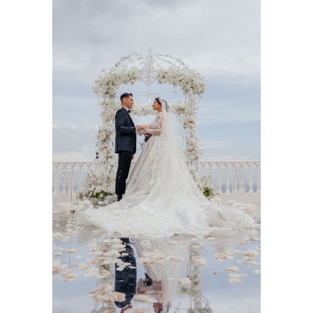 Счастливые лица новобрачных, близких и родных на фоне свадебной арки будут самыми приятными и незабываемыми воспоминаниями на всю жизнь,