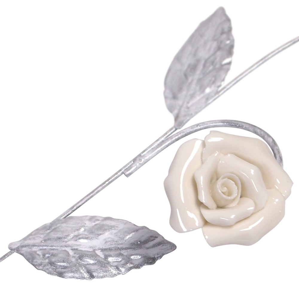 Ветка с розами белая с серебром S4036